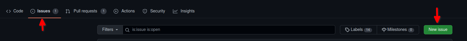 2. Az issues tabon a new issue gombbal hozz létre egy új issue-t. How to create new issue